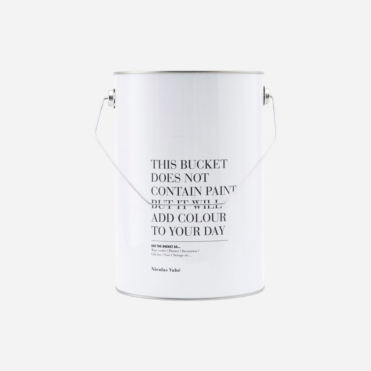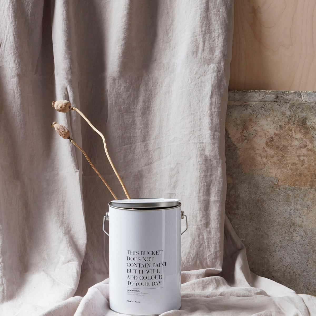 Lasse deiner Fantasie freien Lauf! Der vielseitig verwendbare Aufbewahrungseimer von Nicolas Vahé möbelt jedes Zuhause auf! Das schlichte Design mit einem pfiffigen Text ist dekorativ und lässt sich in vielen Kontexten in Szene setzen. Verwende den Behälter beispielsweise als Geschenkverpackung oder für die Aufbewahrung von Küchenutensilien. Fülle ihn alternativ mit Eis und nutze ihn als Weinkühler für festliche Anlässe. Außerdem kannst du eine grüne Pflanze in dem Behälter in Szene setzen, um einen persönlichen Look zu gestalten. Ganz gleich, wo und wie du ihn verwendest – er bringt in jedem Fall Lebendigkeit und Farbe in deine Einrichtung.